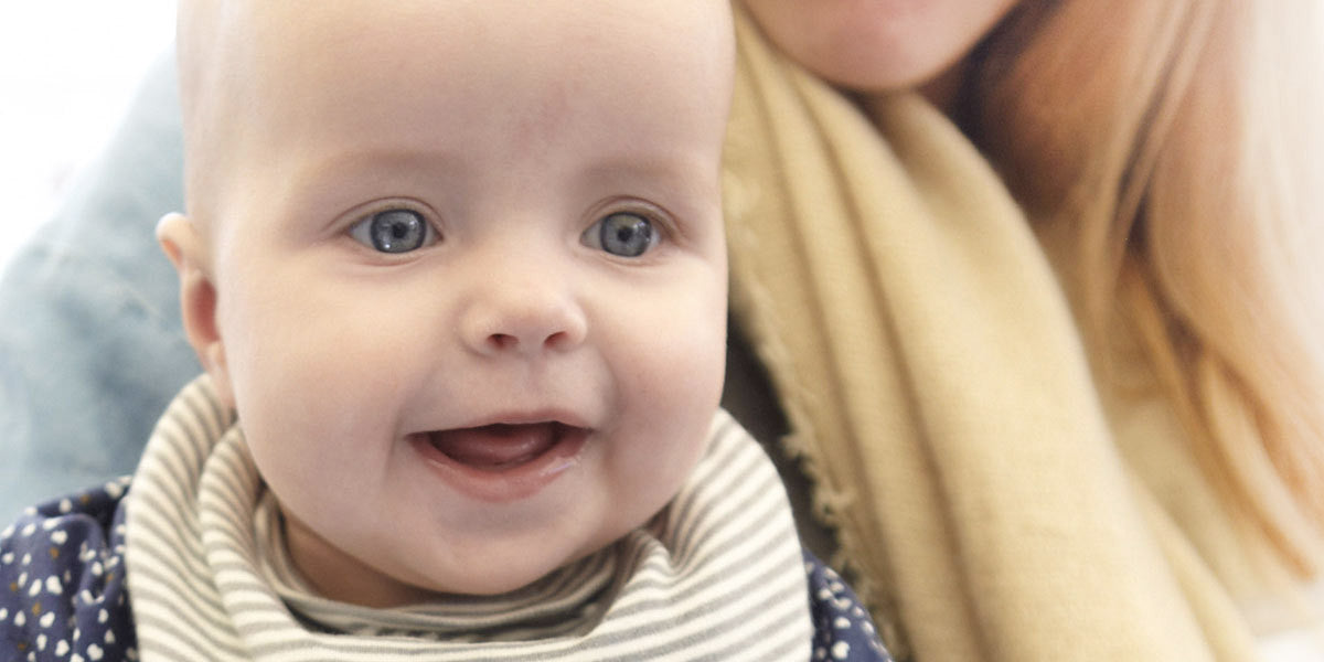 Nancy, one of our best-loved MORI fans, in her MORI milk bib.