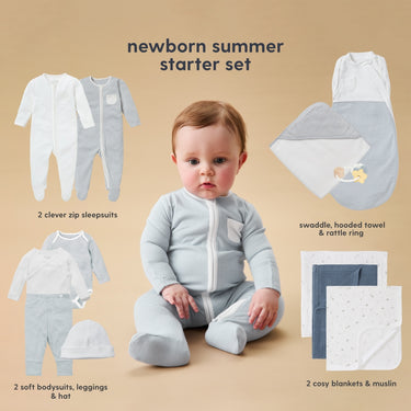 Our Starter Sets are the perfect beginning to every baby’s story - 12 pieces thoughtfully curated from our most-loved essentials, designed for every time of year. Made from the softest, sustainable fabrics to comfort baby and bring calm to those precious early days.