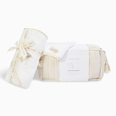 Make bathtime gentle and joyful with the Avery Row Bathtime Bundle Gift Set in Chamomile. Including a soft hooded towel, bath mitt and quilted wash bag, each piece is crafted from organic cotton – a thoughtful and practical gift for new parents.