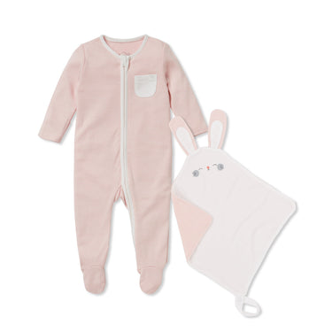Treat a precious little newborn to something soft with our Baby Girl Gift Set. The set includes our bestselling Clever Zip-Up Sleepsuit which is thoughtfully designed to make parenting simpler with zip from head to toe for quick changes. The Bunny Comforter is ideal for snuggling and has a loop to attach to a dummy or pushchair. Both pieces are crafted from our softest signature fabric for a gentle touch on sensitive skin.