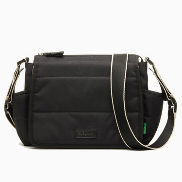 The Babymel Stroller Bag Eco in black is compact, practical and planet-friendly, made from recycled plastic bottles. With a wide opening, side bottle pockets, and an insulated sleeve, it keeps all the essentials to hand. Use it with stroller straps or as a shoulder bag.