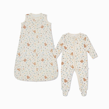 Dress them comfortably on chilly nights with this bear-printed winter bedtime set. It includes our bestselling baby sleepsuit, which features a clever two-way zip down the front for fuss-free changes. Layer it under the 2.5 TOG sleeping bag.