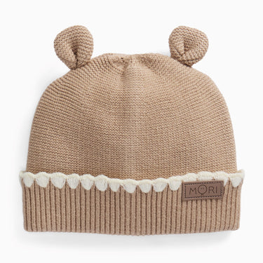 The perfect blend of cute and cosy – our Bear Hat with Embroidery Stitch is designed to keep little heads snug on colder days. With sweet bear ears, taupe knit and contrast blanket stitching, it’s one to wear on repeat.