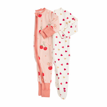 Berry Cherry & Love Heart Clever Zip Sleepsuit 2 Pack