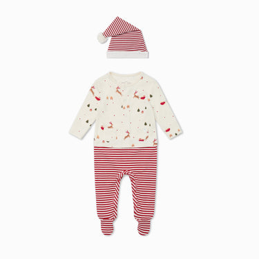 Just the thing for Christmas photos, this fun outfit is decorated with a festive print and candy cane stripes. The jumpsuit is crafted from our softest fabrics with fuss-free poppers down the front.