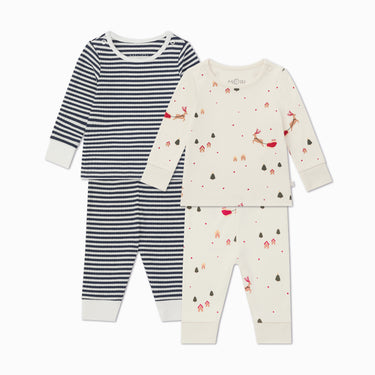 We're hoping there'll at least be a little lie in thanks to the softness of our Christmas pyjamas. The pack includes a signature fabric pair with a fun festive print and a striped set that can be worn all year round.