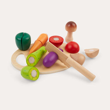 Everyday tasks like Cutting Vegetables can seem appealing for kids, so this kid-friendly Classic World toy is a winner for toddlers. Featuring 7 different veggies, each piece is divided into smaller parts with velcro holding them together. Little ones will enjoy learning to chop them up, using the wooden knife in the set. It's a toy that they will enjoy, as they master their coordination and develop fine motor skills as well.