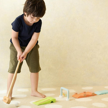 The Classic Toys Golf Set is made from weather-resistant wood, making it a great eco-friendly indoor or outdoor learning toy. It includes golf clubs, cups with flags, balls and 5 unique obstacles, painted in lovely modern colours, that add such a fun element. Perfectly proportioned for small players, this is a brilliant pick for helping develop kids' concentration, hand-eye coordination and turn-taking skills.