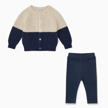 Our Colourblock Cardigan & Knitted Leggings Outfit makes winter mornings simple. Both pieces are made from organic cotton and we've added a little stretch to the leggings for greater comfort.