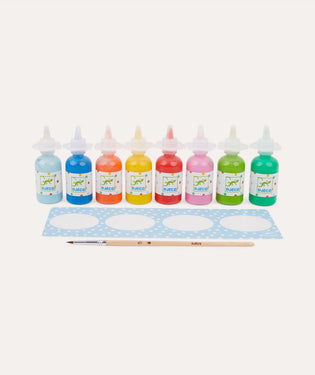 This set of 8 Bottles Of Poster Paint comes in a fantastic range of colours, with two hues of blue, two shades of green and every other colour of the rainbow. The super tactile bottles are easy for little hands to hold but best of all the nozzles are designed to stop paint coming out in a rush so there are no spills and less paint is wasted! It's washable, the colour quality is fantastic and you only need to add a little bit of water to make this paint go an exceedingly long way. Great for getting kids excited about painting - whether that's with the brush and palette it comes with, or just their fingers!