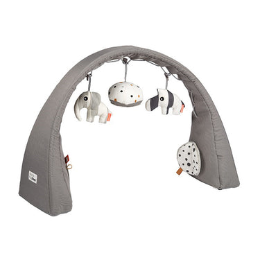 The Done by Deer Grey Activity Gym is perfect for keeping your little one entertained. The baby gym is free-standing, flexible and has adjustable width and height to help your growing baby reach the toys. The outer shell is made from a cotton blend and the inner is soft for safety. The gym can be used anywhere from the floor, over a nest or in a bed and is easy to fold up to bring along or store away. It includes 5 activities, with a crackling crocodile, squeaky toy and a mirror for your little one to look at themselves.