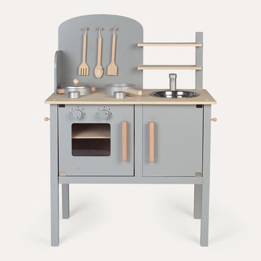 Your little chefs will love this Kitchen from Jabadabado. It comes fully equipped with a stovetop, oven, sink, 3 utensils and 2 pans plus plenty of shelf and cupboard space, it even has a chalkboard to write the specials of the day on! They will be cooking up a storm in no time and when they're finished they can wash everything up in the little sink and tidy it away. (Though we can't promise this habit will stick!)