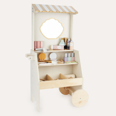 Gorgeousness on wheels comes in the shape of this adorable new Beauty Salon from Jabadabado. It comes with so many accessories that two kids can definitely play with it at one time. As well as make-up palettes, lipsticks, nail varnishes and eve pencils, there's a hairdryer, tongs, straighteners, a comb, plus squirtable bootles of hairspray and foundation. We love the moveable stand with its dispenser for paper towels and safety mirror and that there's also loads of room for them to add more bits and bobs.