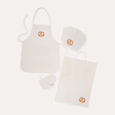 • 4 piece set with hat, oven mitt, apron & tea towel
