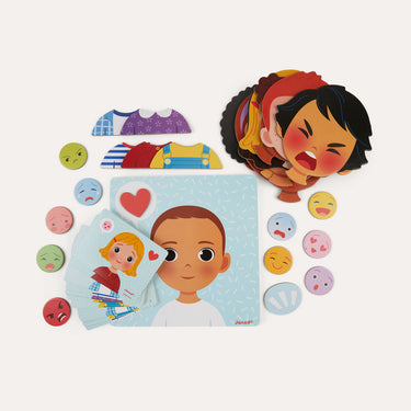 Emotions are big things and toddlers often have a tough time dealing with them. The Emotions Magnetic Game helps them put a name to their feelings and have fun too. There are 10 emotional states for them to recognise - joy, fear, sadness, anger, shyness, love, disgust, laughter, jealousy and surprise - and a mirror in the box so they can try to copy the expressions for each one. A thoughtful game that will help you to have supportive conversations with your toddler about their feelings and other people's.