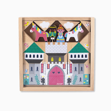 Build fairy-tale worlds with the Janod Enchanted Kingdom Building Blocks. With unicorns, royals and colourful pieces, it’s made for big imagination and easy storage.