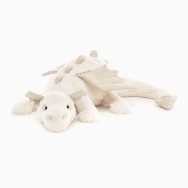 The Jellycat Snow Dragon Large Soft Toy is a magical marshmallow of a companion. With shimmery wings, sparkly spines and the softest creamy fur, this dragon is more about lounging than roaring. Perfect for big cuddles, snowy day snuggles and adding a little fantasy to the nursery.