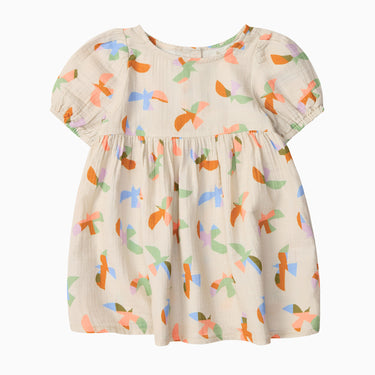 This Muslin Bird Print Dress is made from a lightweight cotton muslin, perfect for warmer months and will make getting your little one dressed a breeze.
