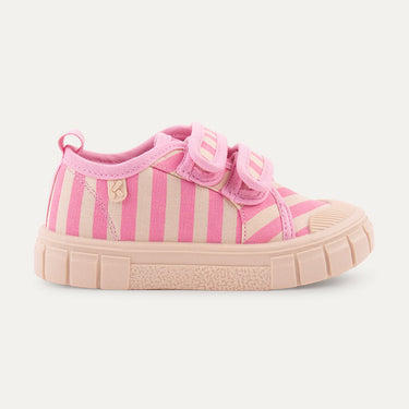 In a range of classic colours with striped insoles, KIDLY by MORI Canvas Trainers are a modern classic for their warm weather wardrobe. Easy-adjust velcro straps and a pull on tab at the back encourage independent dressing, while the sueded cotton canvas uppers and padded insole guarantee day-long comfort. Worn with socks or bare-ankled, they're lightweight but substantial, with molded soles and chunky toe-caps made from recyclable thermoplastic rubber. From park to BBQ to kickabout, they're a goes-with-everything summertime essential that you can pop in the washing machine when they need a spruce up.