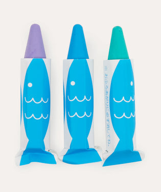 Kitpas Rice Wax Bath Crayons 3 colours Fish (Purple, Blue, Green)