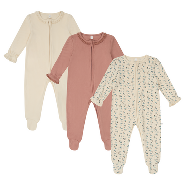 Lace Trim & Floral Ribbed Clever Zip Sleepsuit 3 Pack
