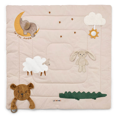The Bernet Classic Activity Blanket is a soft, sensory playground for curious babies. Designed for tummy time and early play, it features crinkly textures, a baby-safe mirror, a silicone teether and friendly LIEWOOD characters to explore. Made from organic cotton with recycled polyester filling, it’s a comfy and stimulating spot from day one.