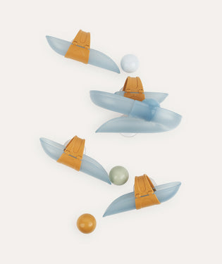 This Little Dutch Waterway Bath Ball Track makes every single bath time loads of fun. There are 4 channel elements that stick firmly to tiles or shower screens thanks to firm suction cups. With both curved and straight elements to choose from, your toddler can build endless courses and they'll simply love launching the 4 balls down into the bubbles below. To make the balls roll faster, just add water!