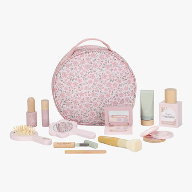This wooden makeup set is perfect for little stylists. The floral fabric bag is filled with toy beauty essentials like a mirror, perfume bottle, lipstick, nail polish and more – all the fun, without any mess.