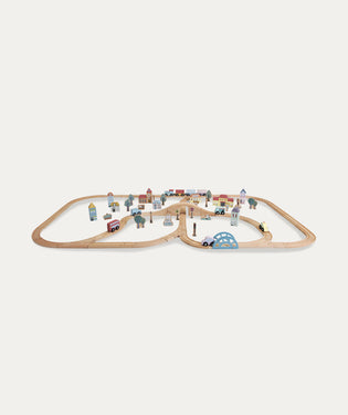 Your kid gets a first class ticket to endless adventures with the Little Dutch Large Train Starter Set. They can hop on board the train, the bus, the taxi or the car and explore the town. With more than 100 parts, this set offers them endless options to get creative and build new combinations over and over again. Each of the wooden figurines and elements has lovely detailed illustrations on both sides and you can build their play potential with additional sets featuring extra vehicles, a zoo and a garage - for even more hours of imaginative fun.