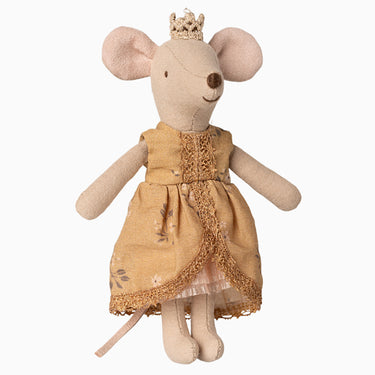 The Maileg Princess Big Sister Mouse is dressed for royal adventures in her beautiful dress and golden crown. Perfect for magical storytelling, she fits wonderfully into the Maileg castle world.
