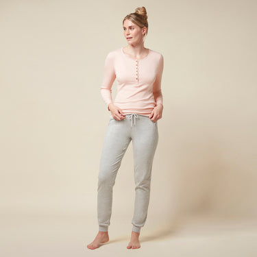 Bring softness to days spent at home with the Mama Ribbed Long Sleeve T-Shirt & Joggers Outfit. The ribbed t-shirt has long sleeves for extra warmth and buttons down the front for breastfeeding. The joggers are crafted from an organic cotton and modal blend with a little stretch for comfort.