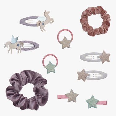 The Mimi & Lula Unicorn Sparkle Gift Pouch is a ready-to-go magical gift. Filled with unicorn-themed clips, ponies and scrunchies, it’s perfect for any little unicorn lover.