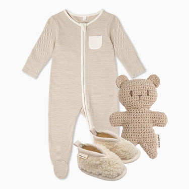 MORI x BINIBAMBA Sleepsuit, Booties & Crochet Toy Gift Set