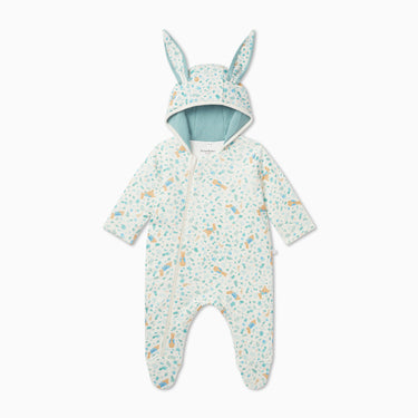 There's no need to fret about keeping them warm with our cosy pramsuit. It's made in our supersoft signature fabric with a lovely print of the mischievous Peter Rabbit. The pramsuit fastens with a concealed zipper for simpler changes and a hood to keep out the cold.