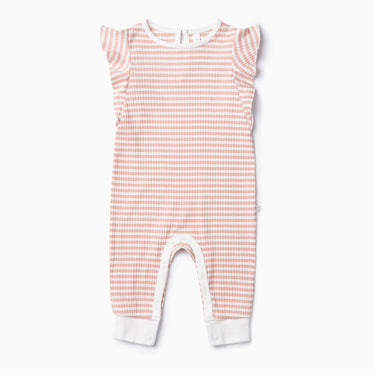 Pink Stripe Ribbed Frill Jumpsuit