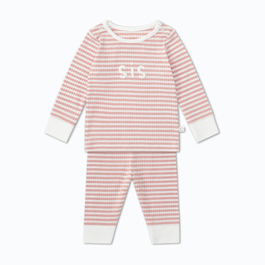 Our Pink Stripe Sis Ribbed Pyjamas will keep your little girl sleeping comfortably every night. Crafted from our stretchy ribbed fabric, the pyjamas are supersoft and gentle on the skin. The top has poppers up to 2 years to make dressing simpler.
