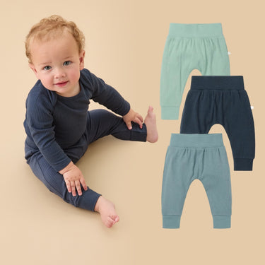 Stock up their playtime wardrobe with this three-pack of joggers. Made from our stretchy ribbed fabric, they have an elasticated waistband for the perfect fit.