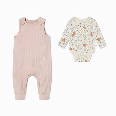Ribbed Dungarees & Bear Bodysuit Outfit