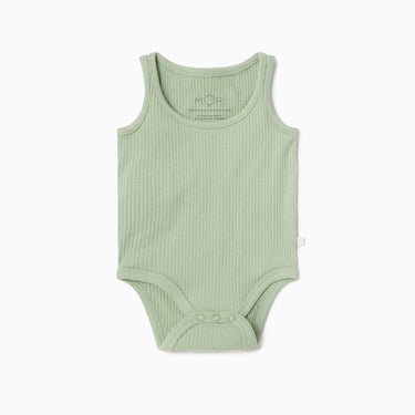 The Ribbed Sleeveless Bodysuit is designed to keep little ones cool and comfortable day or night. The bodysuit is made from a breathable bamboo and organic cotton blend with poppers on the crotch for easy dressing.