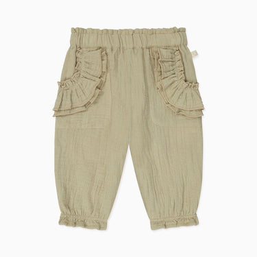 For the love of frills! These Sage Muslin Frilled Trousers are made from lightweight, breathable muslin and have an elasticated waistband to ensure a snug yet flexible fit.