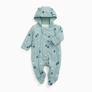 Keep your little one warm on winter adventures with our Ski Pramsuit. Made from our signature fabric and lined for extra cosiness, it features a playful ski print, a full-length zip for easy dressing and adorable bear ears on the hood.