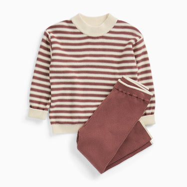 A stripey staple meets cosy comfort – the Stripe Knitted Jumper and matching Ribbed Leggings make the perfect chilly-day duo. Crafted from breathable organic cotton, this set is soft on skin and easy to wear, with thoughtful details like back buttons and a comfy waistband for wriggly little ones.