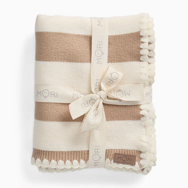 Wrap them up in softness with our Striped Blanket, made for naptimes, pram strolls and cuddles on the go. The gentle taupe and ecru stripes are finished with classic blanket stitch for a timeless look.