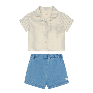 Striped Muslin Short Sleeve Shirt & Denim Shorts Set