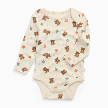The perfect layer for cooler days. Made from our soft organic cotton and bamboo fabric, this bodysuit brings the bear necessities—comfort, cuteness and easy changes.
