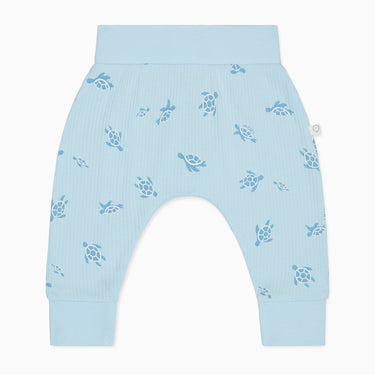 Crafted from our signature organic cotton and bamboo blend with a gentle ribbed texture, these joggers are designed for all-day cosiness and flexibility. Featuring a playful turtle print, a soft elasticated waistband and a relaxed fit, they’re perfect for playtime, nap time and everything in between.