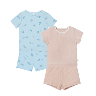 Light, breathable and perfect for warm nights, this 2 pack of ribbed short sleeve pyjamas is designed for ultimate summer comfort. Elasticated waistbands make changing a fuss-free affair.